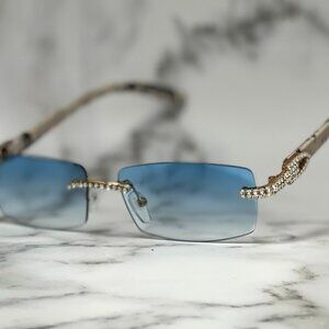 Men Women Sunglasses Blue Lens Fashion Diamond Retro Classic Hip Hop Shades New