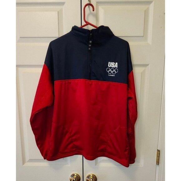 Men Women USA Olympic Committee London Red Blue 1/4 Zip Pullover Size L
