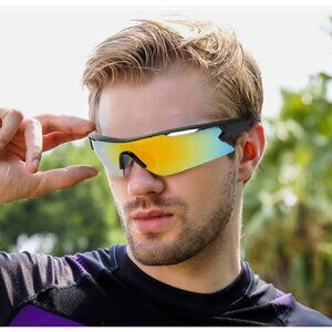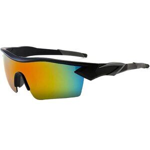 Men Women's Reflective Shield Cycling Sports Rainbow Color Black 80s Sunglasses