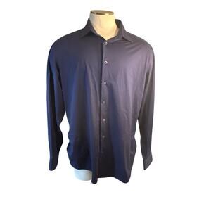 Men XXL Bugatchi 8 Way Stretch Navy Blue Button-Down Long Sleeved Shirt Top
