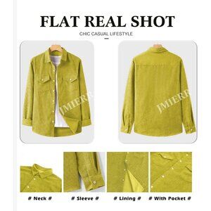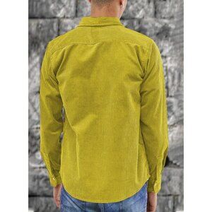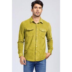 Men Yellow Corduroy Shirt Casual Long Sleeve Button Up Jacket Style Top