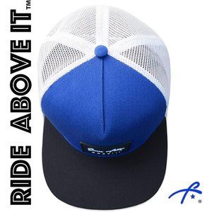 * SMOOTH TRUCKER- This Grace Folly flat bill Blue trucker hat is sure to impress! Structured 5 panel trucker cap with mesh back and adjustable snapback. Be the envy of your friends in this old school trucker.