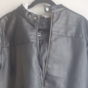 Jacket with grey hoodie .