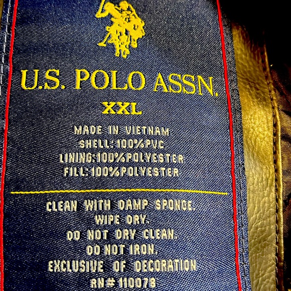 XXL Black men jacket U.S POLO ASSN. Made in Vietnam outside Shell 100% PVC; Lining 100% Plyester! Never Used (No Tag - it was a gift)