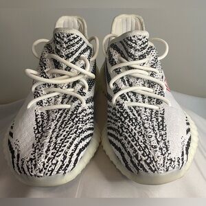 Adidas Yeezy Boost 350 V2 Zebra. Worn but look is brand new. Red embroidery on the sides and some small bits of red on the inside. These shoes are classics and a need in any wardrobe. No box.