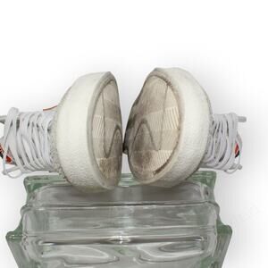 GOOD pre-owned condition. NO BOX. Signs of wear include: these have been sitting for a few years- I broke a lace and only now picked them up and replaced the laces. In addition to some dirt scuffs scrapes wear & dirt on soles they need to be worn & put back in shape (notice the pic of back of shoes looks wonky)