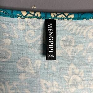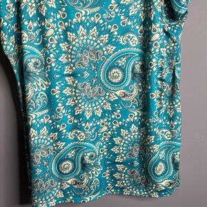 Mengpipi Teal Paisley Print V Neckline Blouse Short Ruffle Sleeves Size XXL