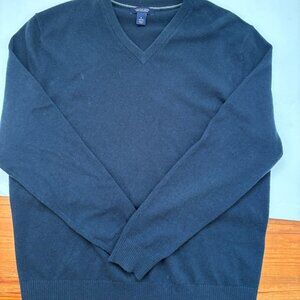Men's 100% Cashmere Navy Blue V-Neck Pullover Sweater Size Large (42-44)