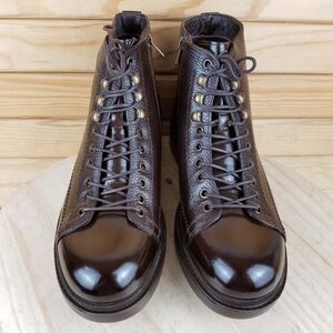 Men's 100% Genuine Leather Brown Ankle Boots by Paul Branco Side Zip Lace-up 11M