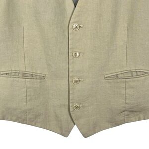 Men’s 100% Linen Beige Suit Vest with Pinstripe Back – Size M