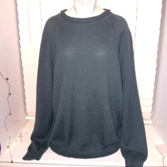 Men's 100% Peruvian Alpaca Round Neck Sweater Dark Grey Herringbone Stitch SZ M