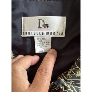 Mens 100% Silk Bomber Jacket Black Gold Floral Asian Print Retro Quiet Lux MED