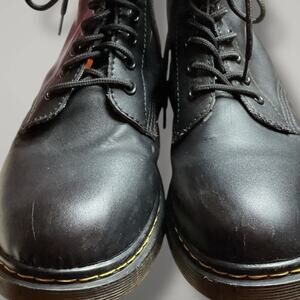 Men's 10.5 DR. MARTENS Smooth Black Leather Lace Up Boots In Excellent Condition