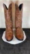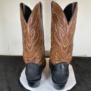 Gorgeous and well maintained Vintage Durango Men's 10 DWestern Cowboy Boot made of beautiful brown leather in very good shape. Overall, the boots are in very good condition. These boots are very versatile and can be used as an everyday work boot or for dressing up some jeans. There are no rips or tears, the soles are in great condition and the rubber heel will prevent wear on the boot due to driving. There is a decorative Western stitching on both calves and there are no rips or tears.