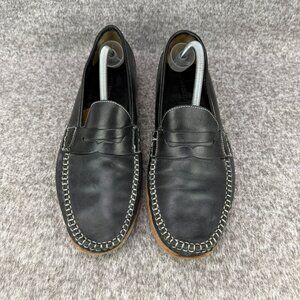 ✅Mens 11M Johnston Murphy Moc-Toe Black Leather Penny Loafers Classic Whale Tale