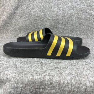 ✅Mens 14 Adidas Adilette Comfort Slides Sandals Lightweight Black/Gold 3-Stripe