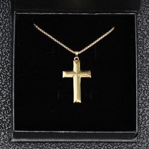 Men's 14K Gold Cross Classic Religious Necklace with Chain