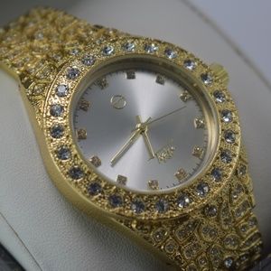 Mens 14K Gold Plated Iced Out Nugget Watch