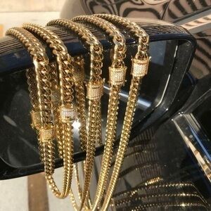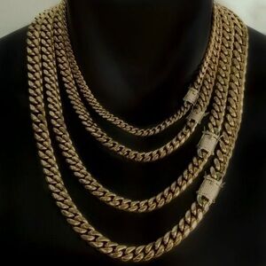Men's 14K Gold Plated Stainless Steel Miami Cuban Link Chain Bracelet CZ Clasp , brand new set 24 inch comes with bracelet 8 inch 10 mm