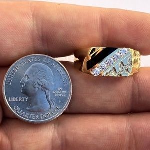 NEW Men's 14k Gold Over Solid 925 Silver Nugget Black Onyx Ring