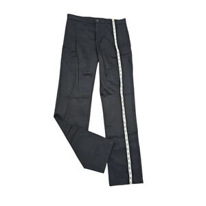 These are new without tags or box, black men's pants from the brand 11th & Union. The size is 30, regular fit. Fabric content is 97% cotton and 3% spandex. Features include front pockets. The pants are made in Sri Lanka. No visible imperfections are noted.