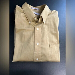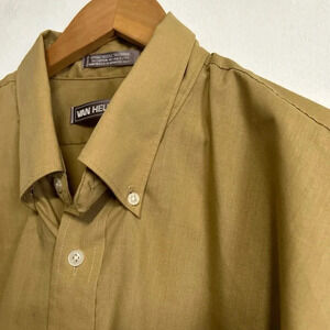 Van Heusen Men’s 17 1/2 34/34 Button Front Shirt Wrinkle Free Single Needle Tan