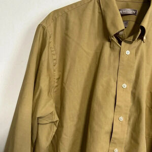Men’s 17 1/2 34/35 Button Front Shirt Wrinkle Free Single Needle Khaki Career