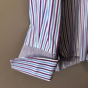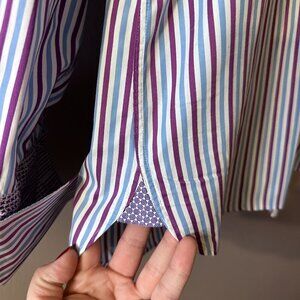 Tags: ted baker, mens, endurance, stripes, dress shirt, button down, button up, ted's classic fit, french cuffs, print, blue, purple, white, print, business casual, professional, business attire, interview, successful, powerful, business trips, Work wear, career wear, business wear, office wear, professional attire, Corporate attire, professional style, polished, Designer, collared, boss
