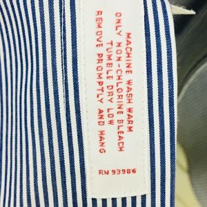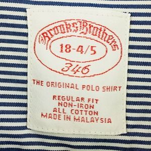 Mens 18-4/5 Brooks Bros Shirt Blue White Stripe Button Down Regular Fit Non Iron