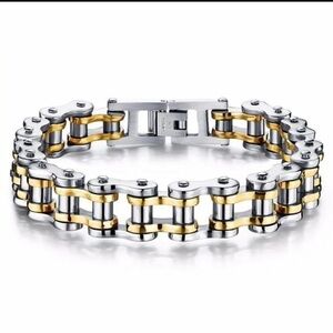 Men’s 18K Gold & White Gold TwoTone Motorcycle Biker Bike Link Bracelet