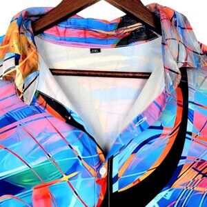 Mens 1XL Button-Up Short-Sleeve Vibrant Music Note Multicolor Abstract Print