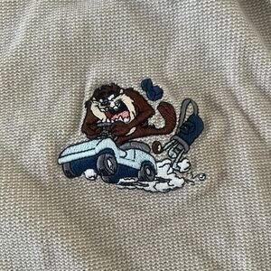 Mens 2001 Polo Golf Shirt Tan 100% Cotton Vtg Designated Drive Taz size L