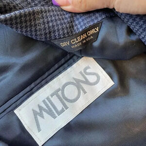 Elevate your wardrobe with this stylish Men's 2Button Blazer Jacket from Miltons. Made from pure silk, this classic fit blazer features a plaid houndstooth pattern in blue and gray, perfect for any occasion from travel to business meetings. The jacket has a single-breasted cut with a notch lapel style and a flat front design.