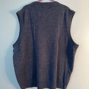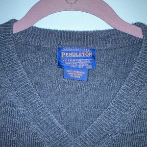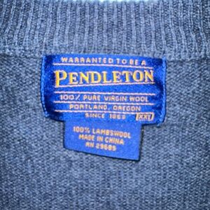 Pit to pit is 26”. This item is a men's 2XL blue Pendleton sweater vest made of 100% virgin lambswool. It features a V-neckline and sleeveless design, making it suitable for layering over shirts for a stylish and cozy look. The vest style adds a touch of sophistication, while the wool material provides warmth and comfort, ideal for colder weather. Perfect for adding a classic and timeless piece to a man's wardrobe.