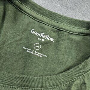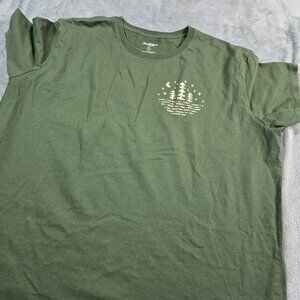 Goodfellow & Co. (Forest Green) – small chest tree print + back “The Great Pacific Northwest” graphic