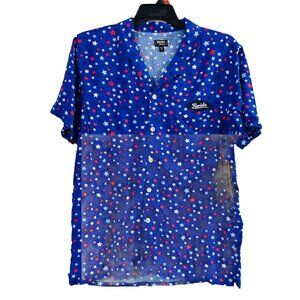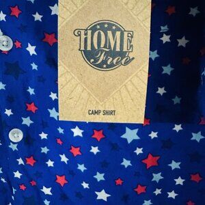 Mens 2XL Patriotic Shirt Button Down W/ Florida Patch Red White Blue Stars
