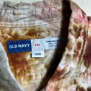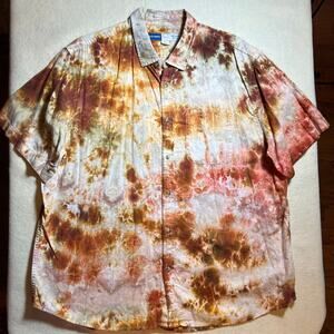 Old Navy Men’s 2XL Regular Fit Short Sleeve Button Down Shirt New Tie Dye Brown, Orange, Red, White
