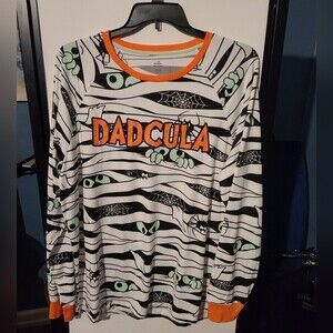 2pc Halloween pajamas with Glow in the dark eyeballs. Size XL says Dadcula on front. Includes pants and shirt both XL. Worn one time.