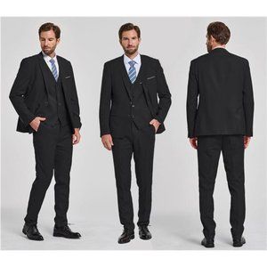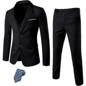 Men's 3 Piece Slim Fit Suit Set, 2 Button Blazer Jacket Vest Pants with Tie