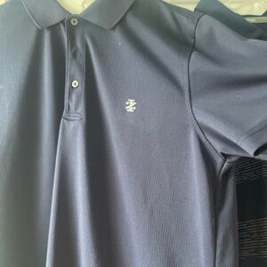 Elevate your style with the Men's Green Striped Polo Shirt, solid blue Izod and blue stripe Adidas Perfect for casual outings, this shirt offers comfort and a sleek look. Size large