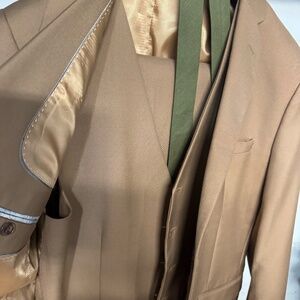 Men's 3 pc Suit - Braveman Carmel color size 40R with Green Tie- only worn once
