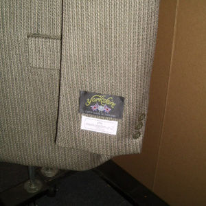 Forrest green, 44 long, 6 button vest, 4 button jacket, 100% wool, silk tie