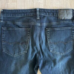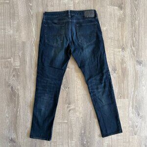Excellent condition. No holes, no tears. Hem is in excellent condition. Jeans are dark, not fades.