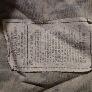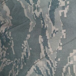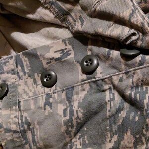 Air Force pattern camo front, back, upper leg & lower leg pockets elastic waist button-fly very good vintage condition