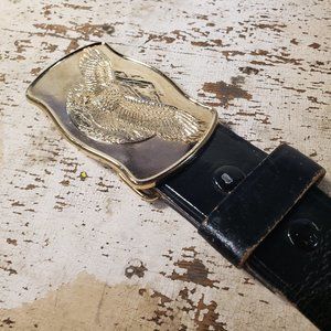 Set your midsection off with this amazing looking buckle. The buckle is flat and not a high quality item but it looks pretty cool. Belt is used but in good condition. Please view all photos.