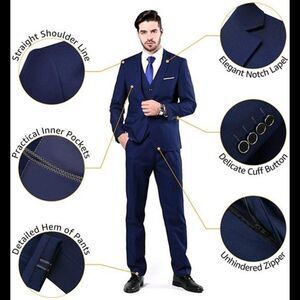-MODERN STYLE & SLIM FITTING -- This tuxedo / suit set is with slim-fitting cut from 3D draping. Slim-fitting suits are a little tighter than regular suits. They make you look slimmer and smarter. And thanks to our accurate size suggestion, you will find it not only slim but also comfortable. You will get tons of compliments throughout the day!