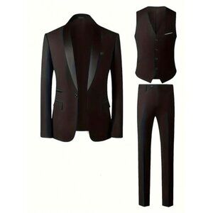 Men's 3-Piece Suit, Suit Jacket + Vest + Trousers, Business Casual. BLACK
