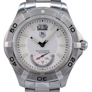 Men's 41mm Tag Heuer Aquaracer SS Silver Dial 300M Quartz Dive Watch Ref WAF1011