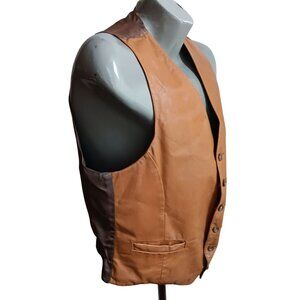 Men's 42 Large Leather Vest Vintage 80's Startown Boho Macho Distress Londontown