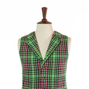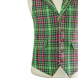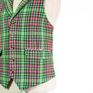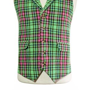 Mens 46R Green Pink Plaid Lambswool Vest Waistcoat Wedding Party Formal Casual